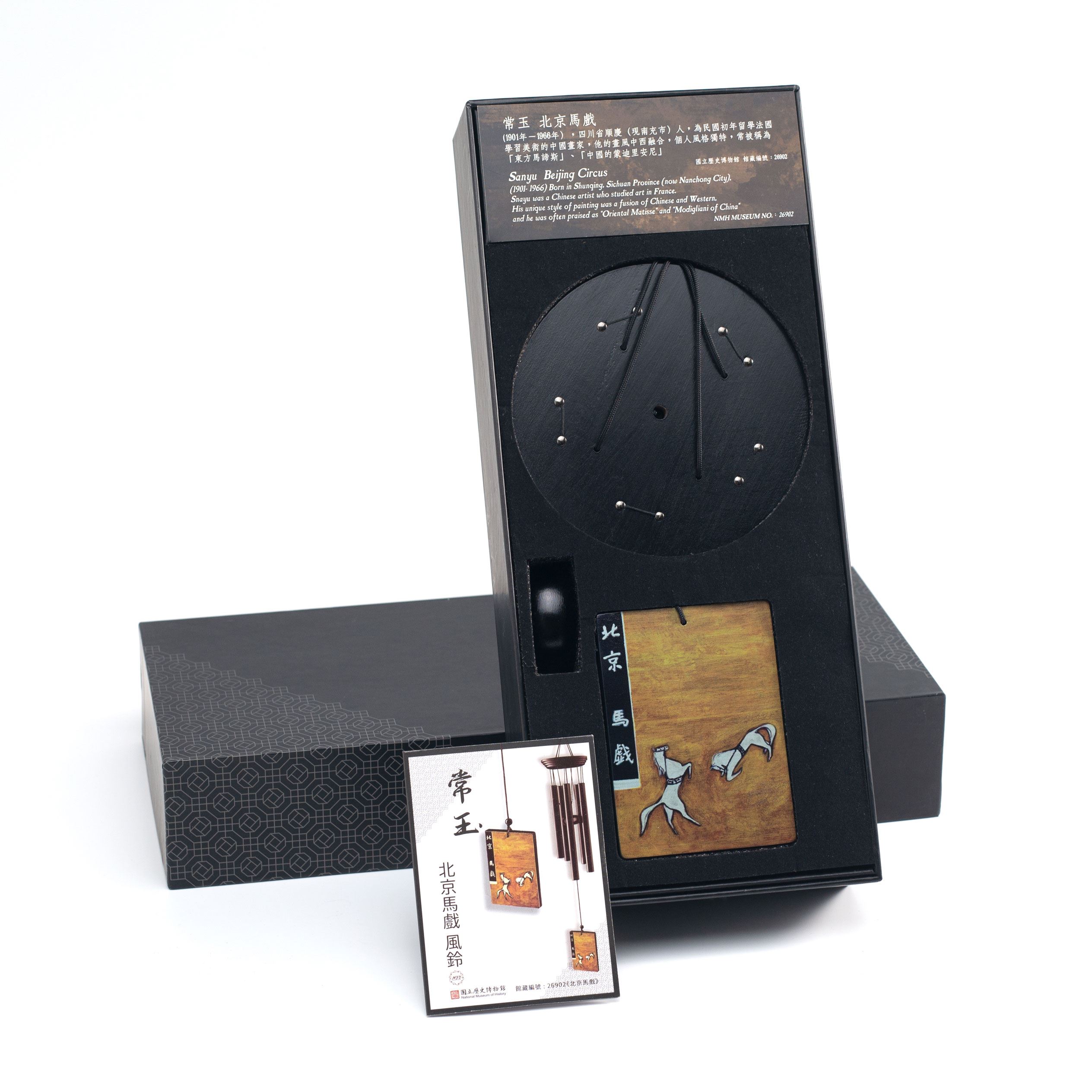 《北京馬戲》是常玉埋藏心中家鄉的記憶,表演雜耍的兩匹白色駿馬,矯健且活潑地舞動在無垠的金黃色大地之上,這是他的鄉愁。麥法迪常玉系列商品,取得國立歷史博物館典藏圖像授權,將常玉《北京馬戲》,典藏編號26902,如此樸實純真的畫作融入深邃沉穩的黑色風鈴之中,更顯出畫作的典雅及優美。精準調音的風鈴隨著微風擺動,讓微風為我們訴說著對常玉的喜愛。